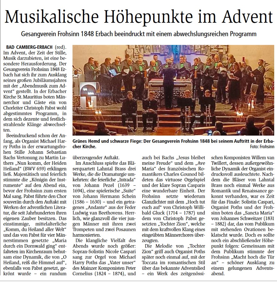 Glanzvolles Kirchenkonzert mit dem Frohsinn Erbach |
